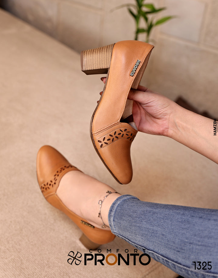 حذاء جلد طبيعي ، مصنوع بأيدي فلسطينيةمكون من أفضل وافخم الخامات لضمان الراحة والأناقةارتفاع الكعب : 6 سم