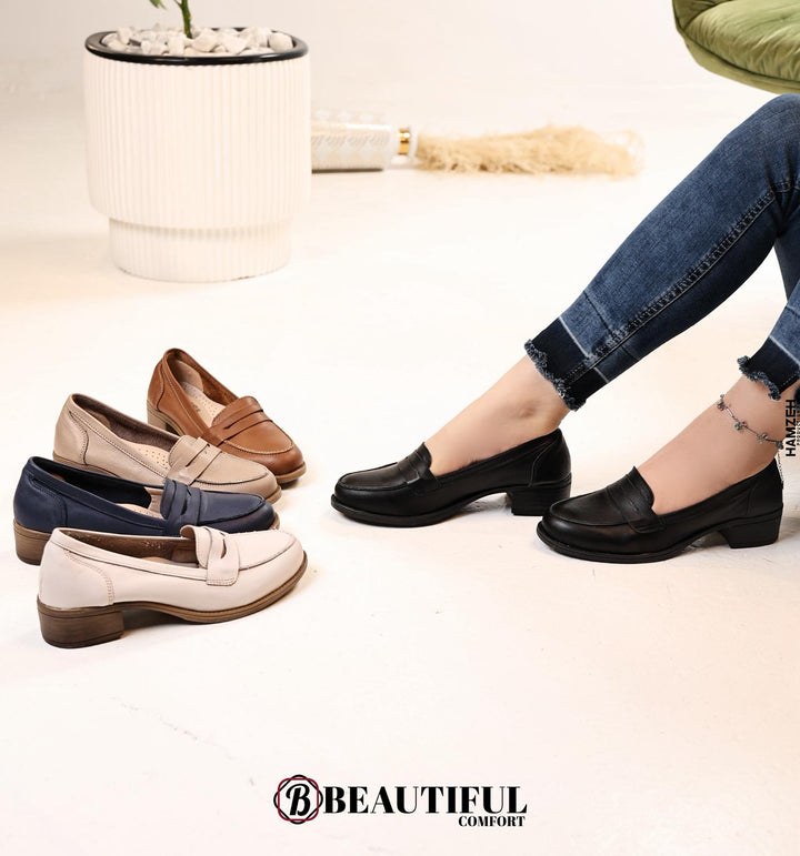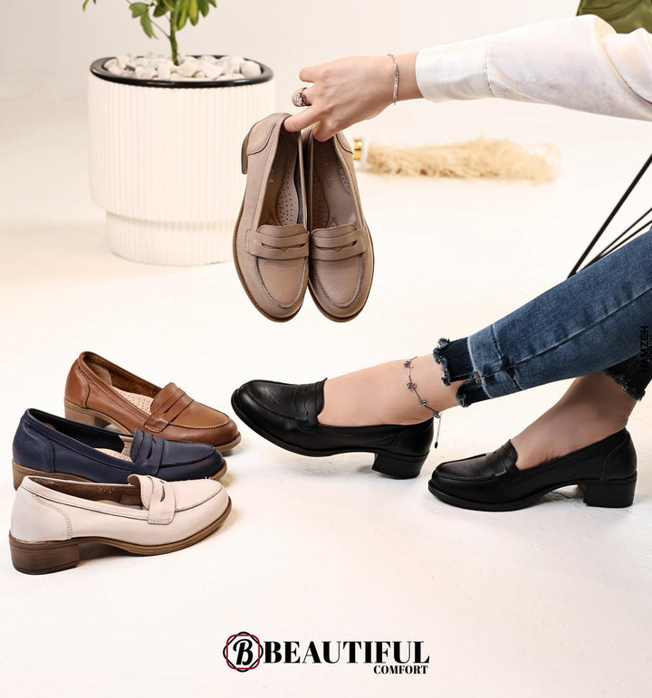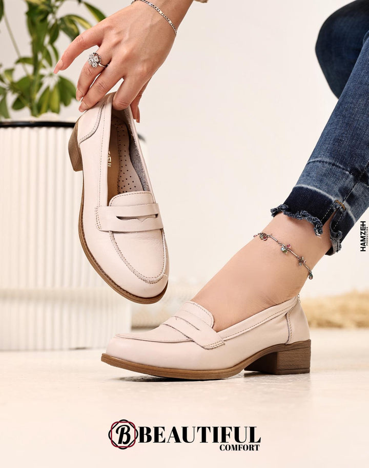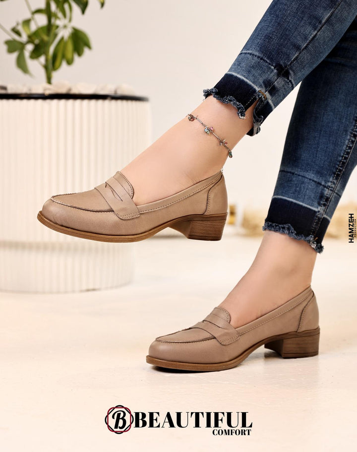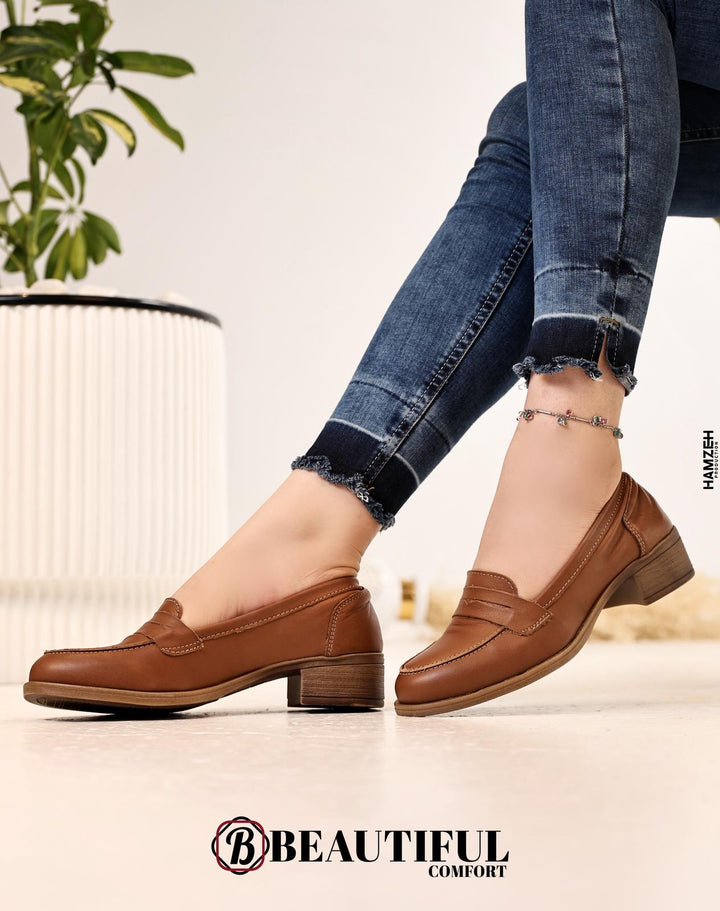 حذاء جلد طبيعي ، مصنوع بأيدي فلسطينية مكون من أفضل وافخم الخامات لضمان الراحة والأناقة ارتفاع الكعب : 3 سم