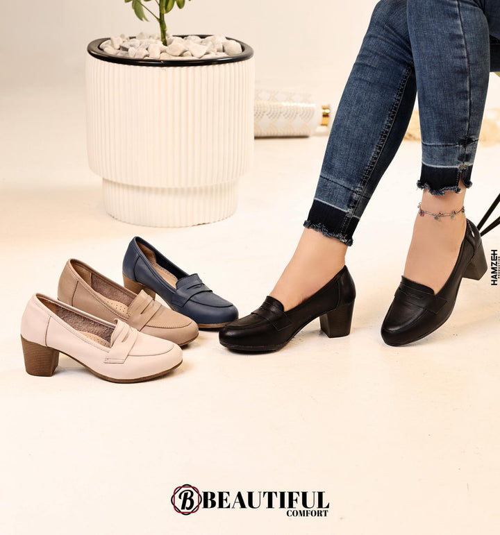 حذاء جلد طبيعي ، مصنوع بأيدي فلسطينيةمكون من أفضل وافخم الخامات لضمان الراحة والأناقةارتفاع الكعب : 6 سم