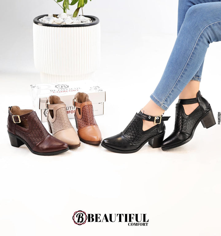 حذاء جلد طبيعي ، مصنوع بأيدي فلسطينيةمكون من أفضل وافخم الخامات لضمان الراحة والأناقةارتفاع الكعب : 6 سم